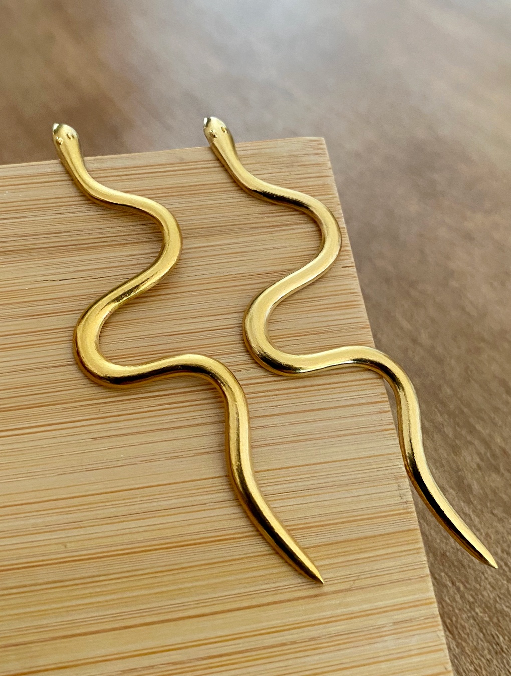 Estas caravanas, elaboradas en acero dorado, presentan una delicada forma de víbora.